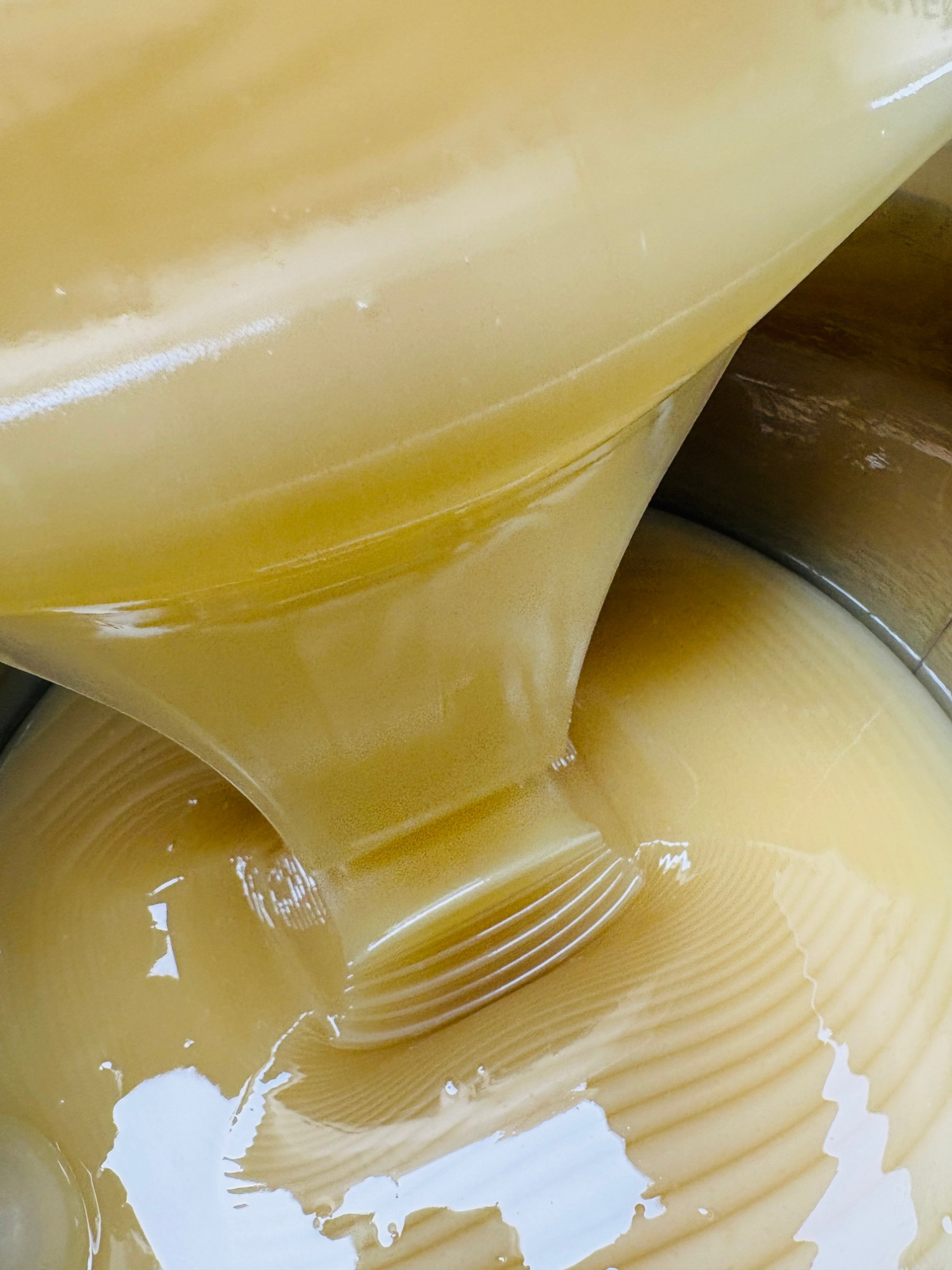 Cremehonig ist im Grunde „gelenkte Kristallisation“. Der Honig wird in der Phase gerührt, in der die Kristallbildung einsetzt. Durch das regelmäßige, langsame Rühren werden entstehende Kristalle immer wieder verteilt und klein gehalten, statt dass wenige Kristalle zu großen Körnern zusammenwachsen. So entsteht eine feine, streichfähige Struktur. Entscheidend ist dabei nicht „viel Luft schlagen“, sondern gleichmäßig rühren und dem Honig Zeit geben, bis die gewünschte Konsistenz stabil ist.